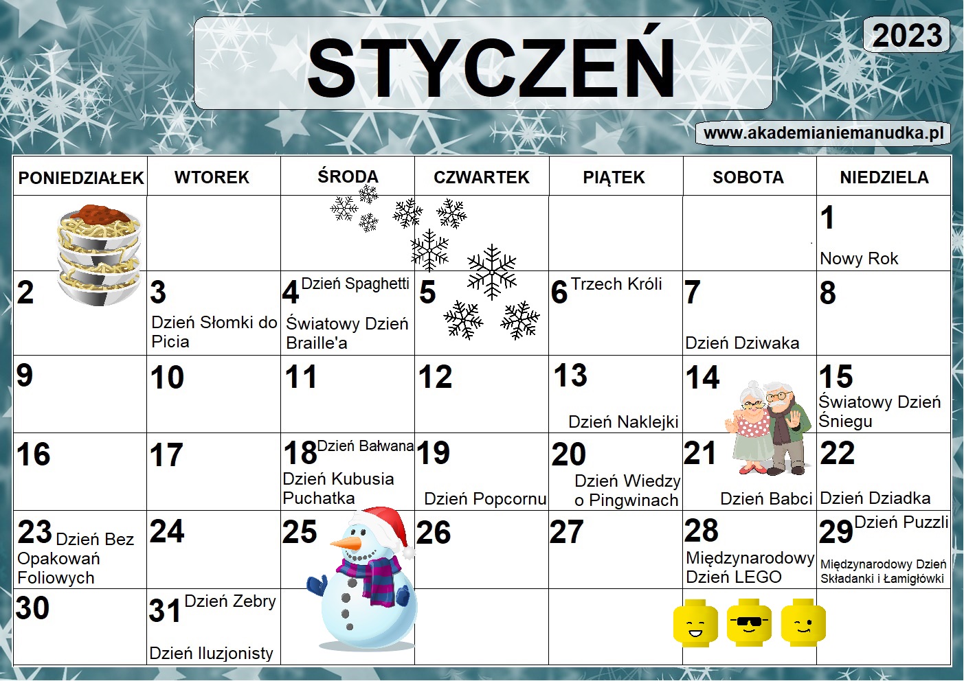 Kalendarz Świąt Nietypowych - styczeń