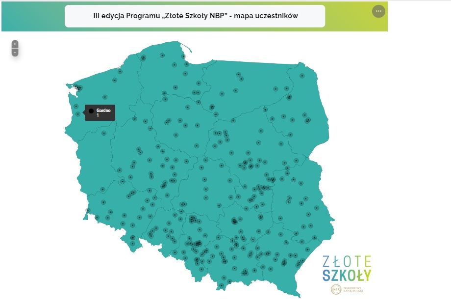 Mapa uczestników projektu „Złote Szkoły NBP".