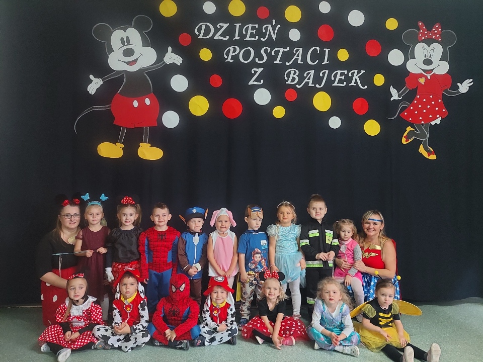 Dnia 04.11.2021 r. odbył się w naszym przedszkolu bal z okazji Dnia postaci z bajek. W tym dniu wszystkie dzieci, wraz z paniami-były przebrane za ulubione postaci z bajek.