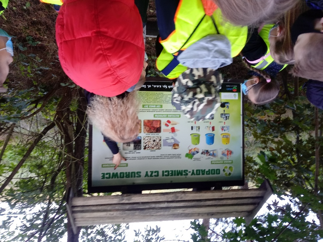 Przemaszerowaliśmy ”Ścieżką Edukacyjną”- segregowanie , składowanie, oraz przetwarzanie odpadów. Dzieci dowiedziały się jak długo rozkładają się śmieci, jakie mamy odpady papierowe, odpady z metali, tworzyw sztucznych, odpady ze szkła i odpady biodegradowalne. Utrwaliły informacje o kompostowniku ,oraz kolory pojemników do jakich powinny trafić odpady, które znalazły się na ich drodze. Podczas odczytywania przez dzieci informacji na poszczególnych tablicach, oraz udzielania prawidłowych odpowiedzi każde dziecko otrzymało odznakę :”Nie śmieć! To nie wypada”, ”Wyrzucaj śmieci do kosza”, oraz książeczkę „Segregacja odpadów”. Zajęcia były bardzo interesujące i pouczające. Zostaliśmy miło przyjęci i w równie ciekawy sposób oprowadzeni po terenie wysypiska. Na koniec zwiedzania wszyscy ładnie podziękowaliśmy paniom za chęć oprowadzenia nas i za cierpliwość .Około godziny 11.30 wróciliśmy autobusem do szkoły. Ta wycieczka bardzo nam się podobała dzięki niej wiele zapamiętamy. Mamy nadzieję, że będzie więcej takich edukacyjnych ofert i wyjazdów.