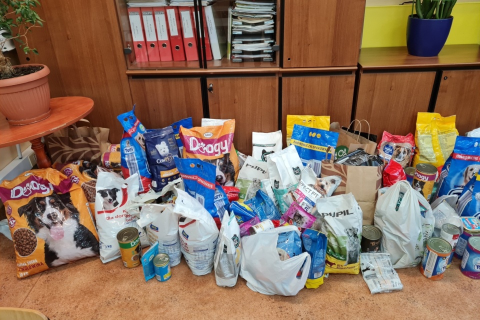 Samorząd uczniowski zorganizował akcję zbierania karmy dla GRYFIŃSKIEGO KOJCA. Nasza szkoła zebrała ponad 100 kg karmy oraz kołdry dla naszych zwierzaków.