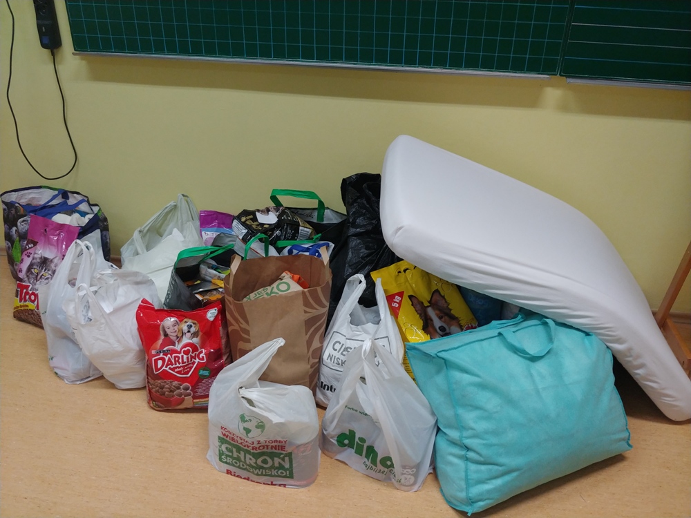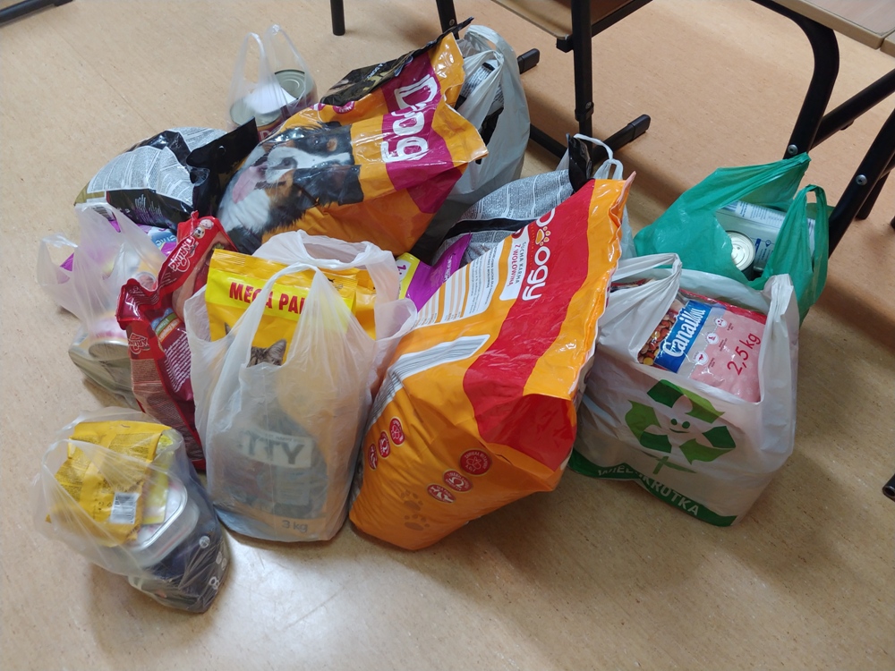 W ramach „Super Klasy” w październiku, uczniowie klas 4-8, zbierali karmę dla zwierząt oraz kołdry i poduszki przeznaczone dla bezpańskich psów i kotów przebywających w Gryfińskim Kojcu.