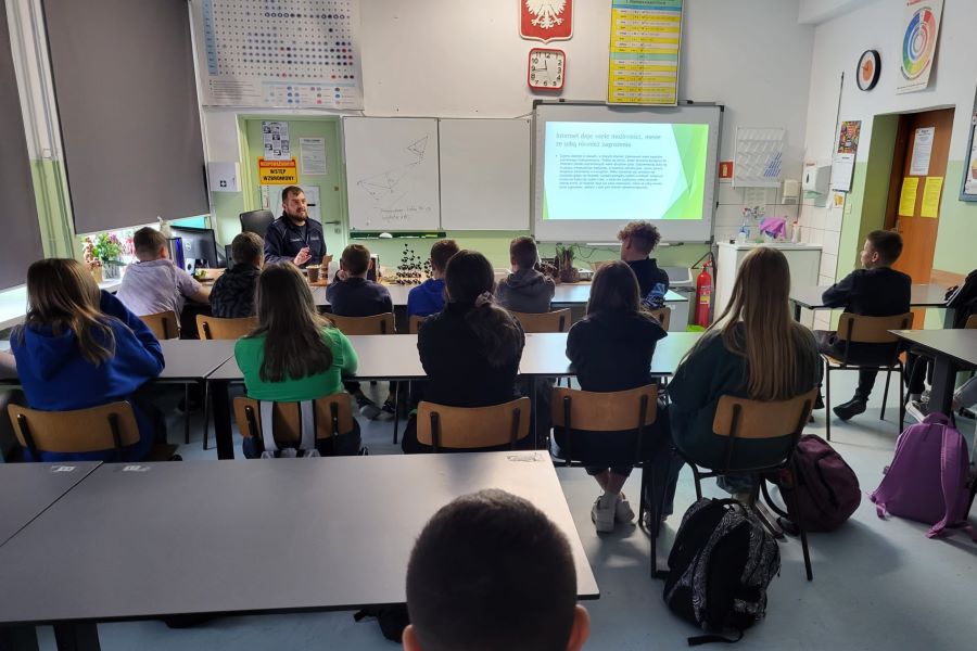 W dniu 24 października 2023 r. uczniowie klasy 6a i 7a wzięli u udział w spotkaniu z przedstawicielem Komendy Powiatowej Policji w Gryfinie p. Pawłem Rozsparą.