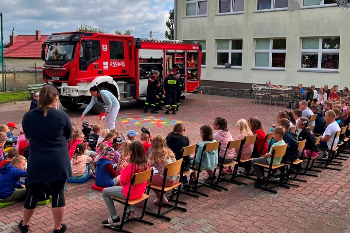 10 czerwca 2022 r. odbyło się spotkanie z przedstawicielami OSP-WEŁTYŃ. Strażacy rozmawiali z dziećmi nt bezpieczeństwa podczas wakacyjnych zabaw i prac polowych, przypomnieli zasady udzielania pierwszej pomocy.