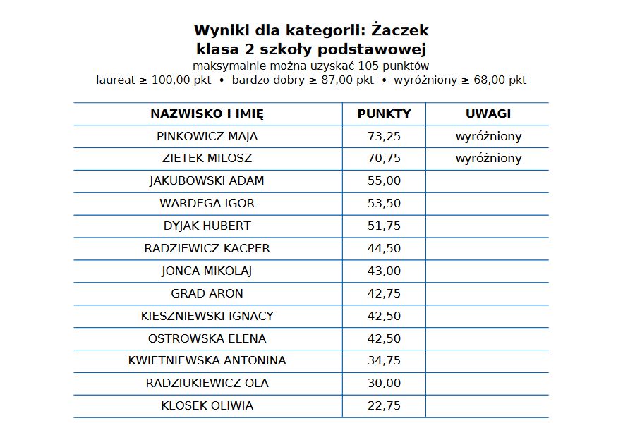 Wyniki Międzynarodowego Konkursu Kangur Matematyczny w naszej szkole.