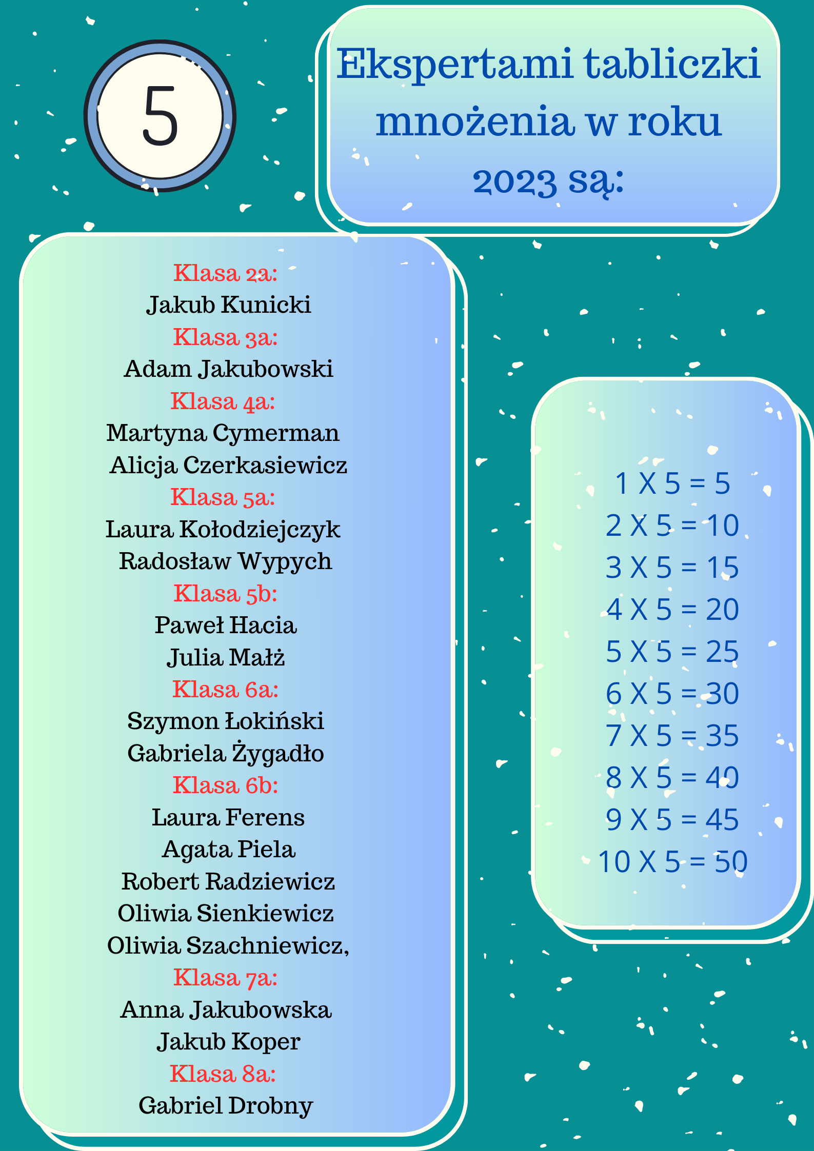 Jak co roku w naszej szkole 17 listopada 2023 roku odbył się konkurs z okazji Światowego Dnia Tabliczki Mnożenia 2023.
