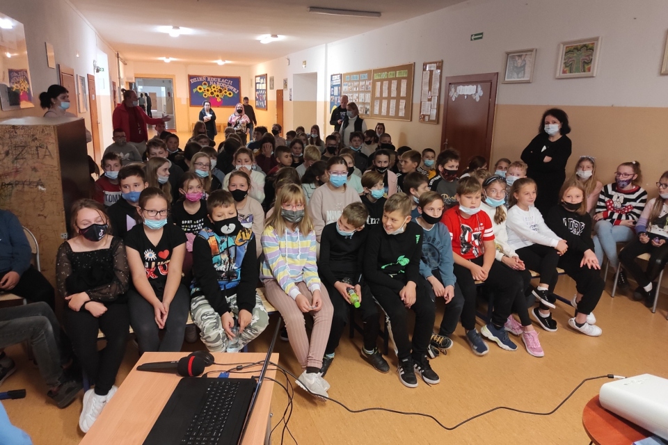 W dniu 8 października 2021 r. uczniowie klas I-III i IV-VII obejrzeli spektakl pt.: # DZIIECI W SIECI, PLIK I FOLDER NA TROPIE INTERNETOWYCH KŁOPOTÓW!