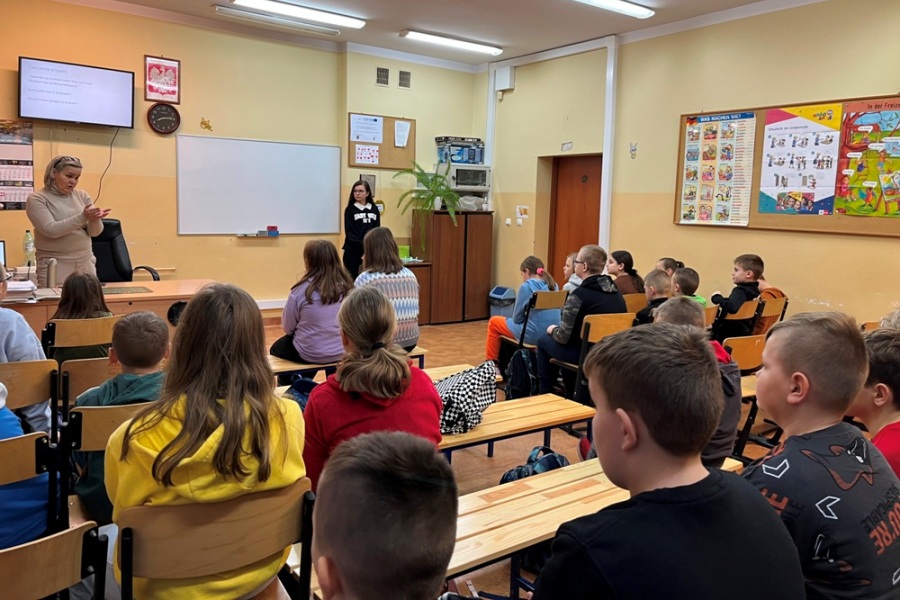 W dniu 8 czerwca 2022 r. uczniowie klas siódmych wzięli udział w spotkaniu z p. Natalią Korkuś z Powiatowej Stacji Sanitarno – Epidemiologicznej w Gryfinie oraz z p. Hubertem Lewandowskim z Komendy Powiatowej Policji w Gryfinie.