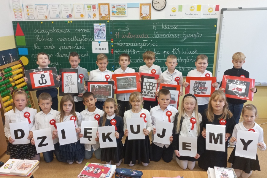 W ramach szkolnego programu patriotycznego „Jesteśmy szkołą młodych patriotów, Mały Człowiek- Wielki Patriota” w każdej klasie z okazji 104. rocznicy odzyskania niepodległości przez Polskę zostały przygotowane przez uczniów gazetki upamiętniające to ważne dla każdego Polaka święto.