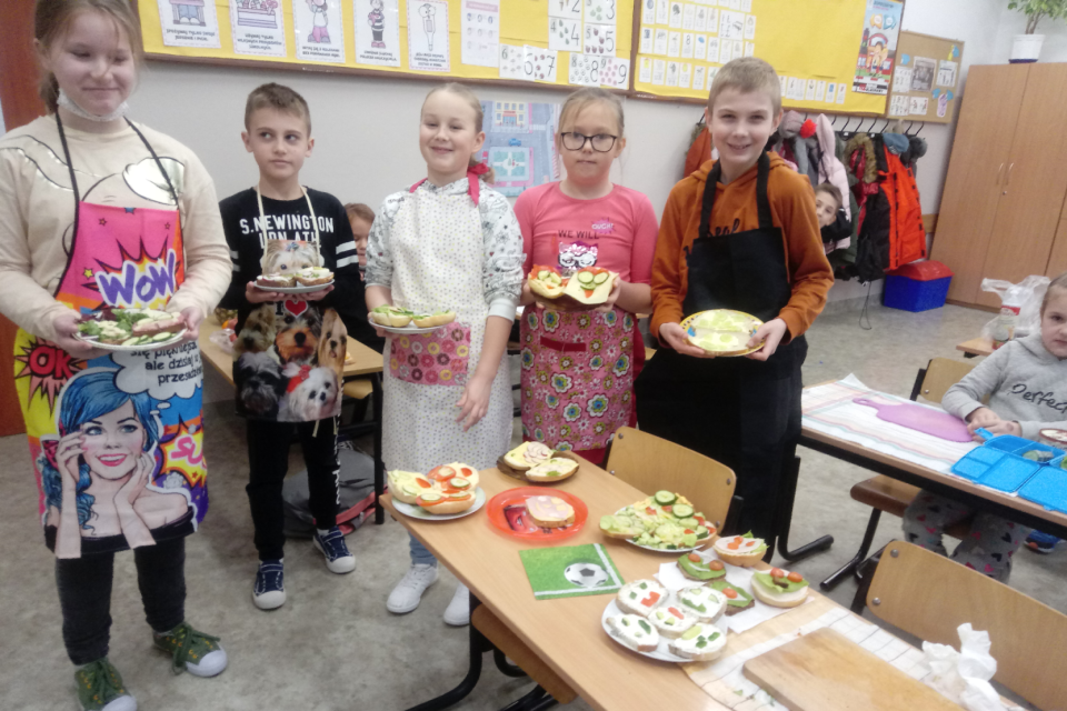 W ramach „Programu dla szkół” Ekipa Chrupasa gotuje uczniowie klasy 1a robili kanapki na drugie śniadanie.