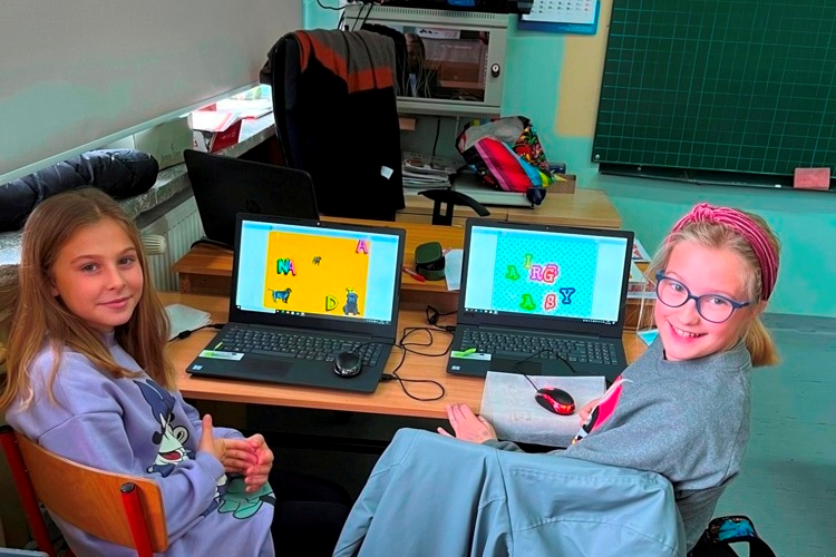 Hej, to my Scratch’aki! Jesteśmy uczniami klas czwartych, chodzimy na zajęcia programowania w Scratch’u.