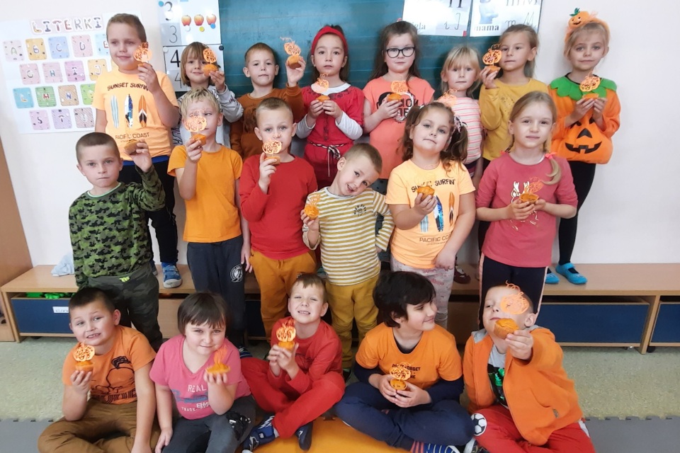 29.10.21 r. w naszym przedszkolu świętowaliśmy dzień dyni. Wszystkie przedszkolaki przyszły w ten dzień ubrane na pomarańczowo. Poznały różne rodzaje dyń i wzbogaciły swoją wiedzę nt. wartości odżywczych tych warzyw.