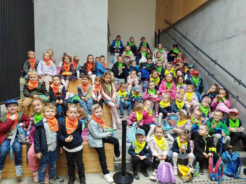 30 maja przedszkolaki wybrały się na wycieczkę do teatru na spektakl pt. „Baśniowy świat braci Perrault”.