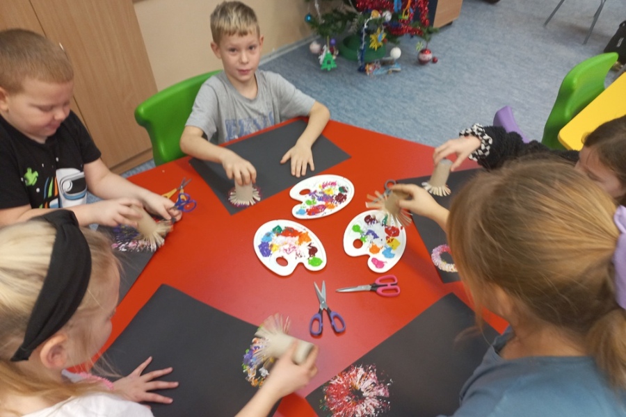 - Praca plastyczna z użyciem farb : „ Fajerwerki”.