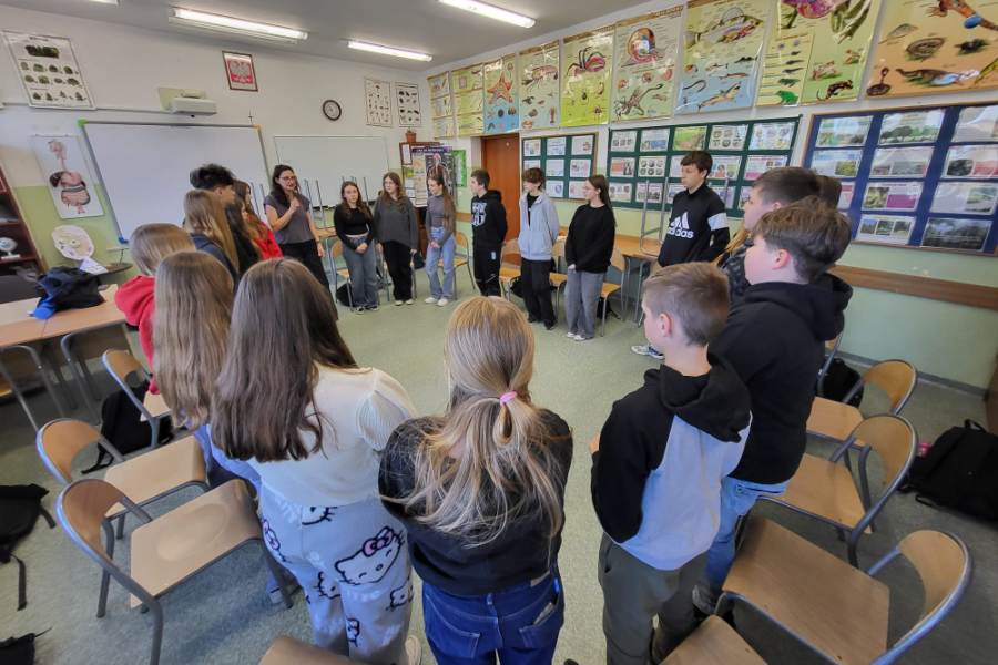 Wolontariusze z klasy 7a i 7b wzięli udział w warsztatach z przedstawicielem Polites.