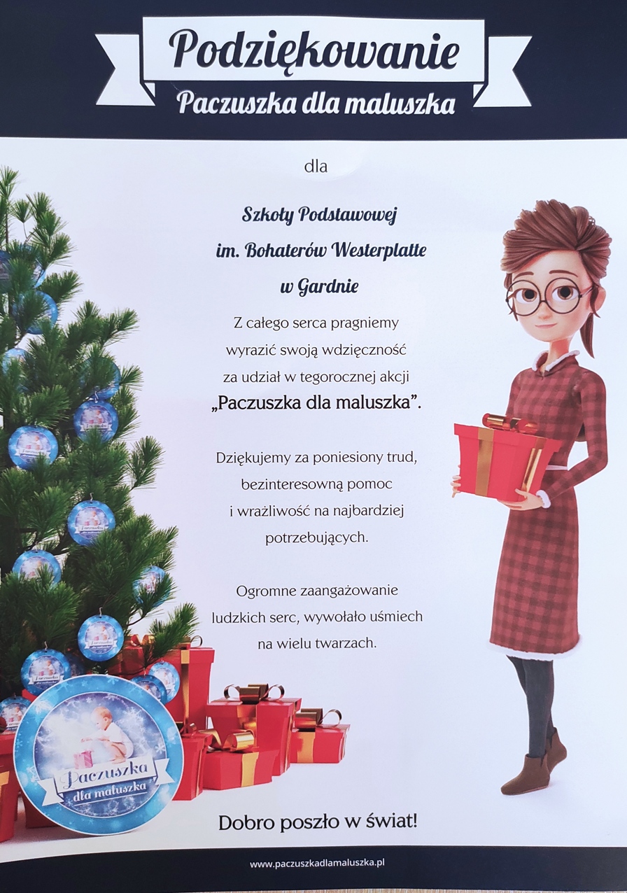 Podziękowanie dla naszej szkoły za udział w akcji „Paczuszka dla maluszka".