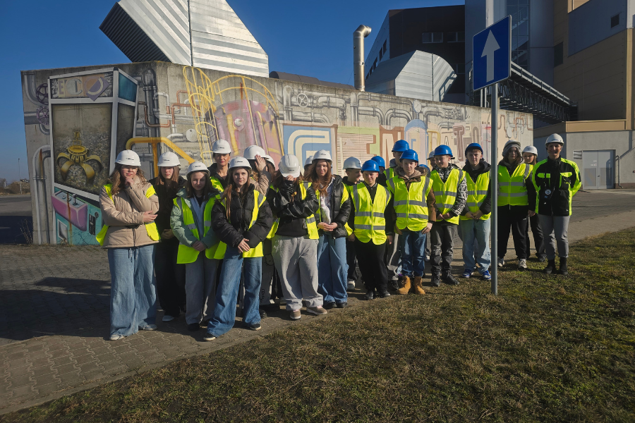 We wtorek 3 marca 2026 roku uczniowie klas pierwszych wraz ze swoimi opiekunkami p.Beatą Borsuk i p.Aleksandrą Kupnicką odwiedzili EcoGenerator w Szczecinie. Podczas pobytu dowiedzieliśmy się, jak z odpadów wytwarzana jest energia i jakie znaczenie dla ochrony środowiska i nowoczesnej gospodarki ma spalarnia odpadów komunalnych. W ramach około 1,5 godzinnej wizyty, odbyło się krótkie spotkanie edukacyjne w sali konferencyjnej oraz wycieczka po zakładzie, podczas której dowiedzieliśmy się o jego funkcjonowaniu i obejrzeliśmy najciekawsze miejsca. Zobaczyliśmy bunkier, w którym odbierane są wszystkie odpady oraz to, jak pracuje w nim charakterystyczna wielka stalowa łapa, czyli chwytak. Przyjrzeliśmy się płomieniom, które trawią odpady i zapoznaliśmy się z urządzeniami, które oczyszczają spaliny. Nie ominęliśmy także muru z wyjątkowym muralem, przy którym sobie zrobiliśmy pamiątkowe zdjęcie. Na koniec zwiedzania każdy z uczestników, otrzymał ecogeneratorowy upominek. To były naprawdę bardzo ciekawe i praktyczne zajęcia.