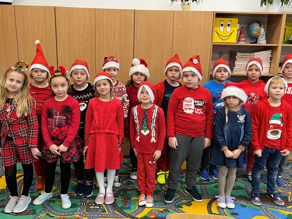 W ramach konkursu „Super klasa” zadaniem w grudniu było ubranie się na czerwono oraz założenie czapki Mikołaja.